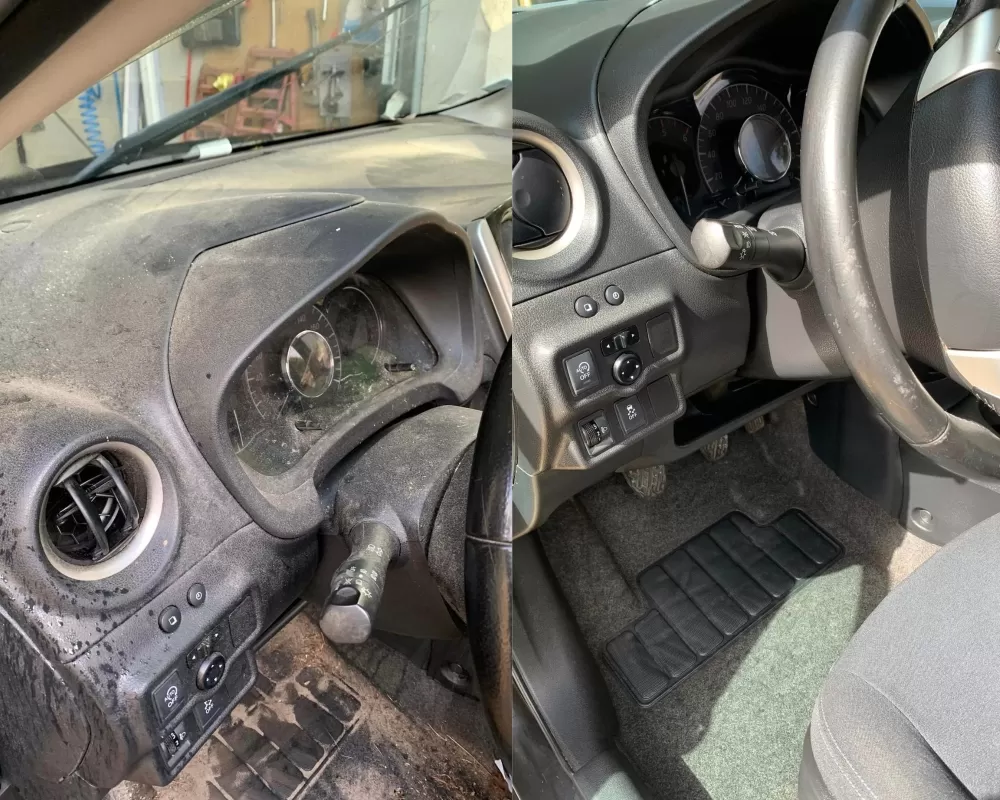 aspiration en profondeur de tout l'habitacle et shampouinage des sièges, moquettes, tapis de sol, coffre,nettoyage du tableau de bord, plastiques, garnitures et montants de porte,vitres.