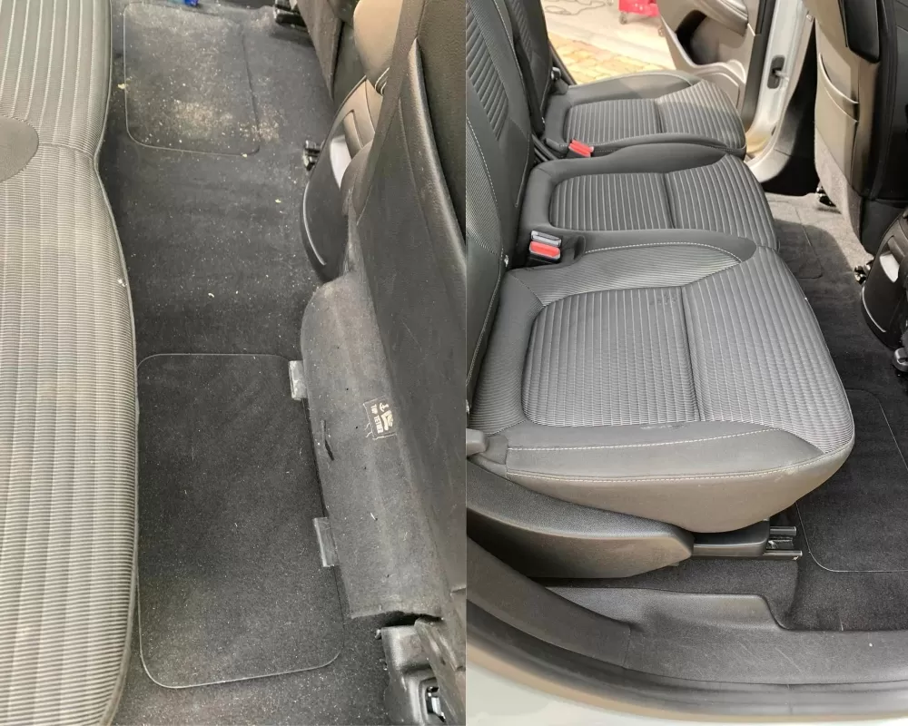 Nettoyage intérieur aspiration de tout l'habitacle(sièges,moquettes,coffre) et shampouinage des sièges,moquettes,coffre,lavage complet du tableau de bord et plastiques,garnitures de porte,entourage des portes,vitres int/ext à la main,pré lavage,lavage carrosserie et jantes à la main,rinçage,essuyage de la carrosserie.
