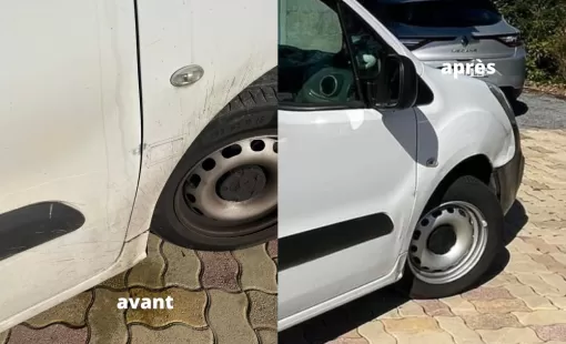 Pré lavage, décontamination, lavage à la main avant polissage complet du véhicule pour retirer les traces publicitaire, lustrage de toute la carrosserie pour lui redonner son éclat d'origine.