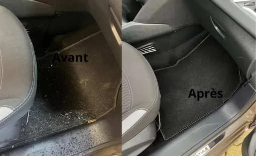 Aspiration de tout l'habitacle en profondeur, shampouinage des moquettes et coffre, nettoyage des sièges et tapis de sol, vitres intérieures, dépoussiérage et nettoyage tableau de bord, plastiques,…